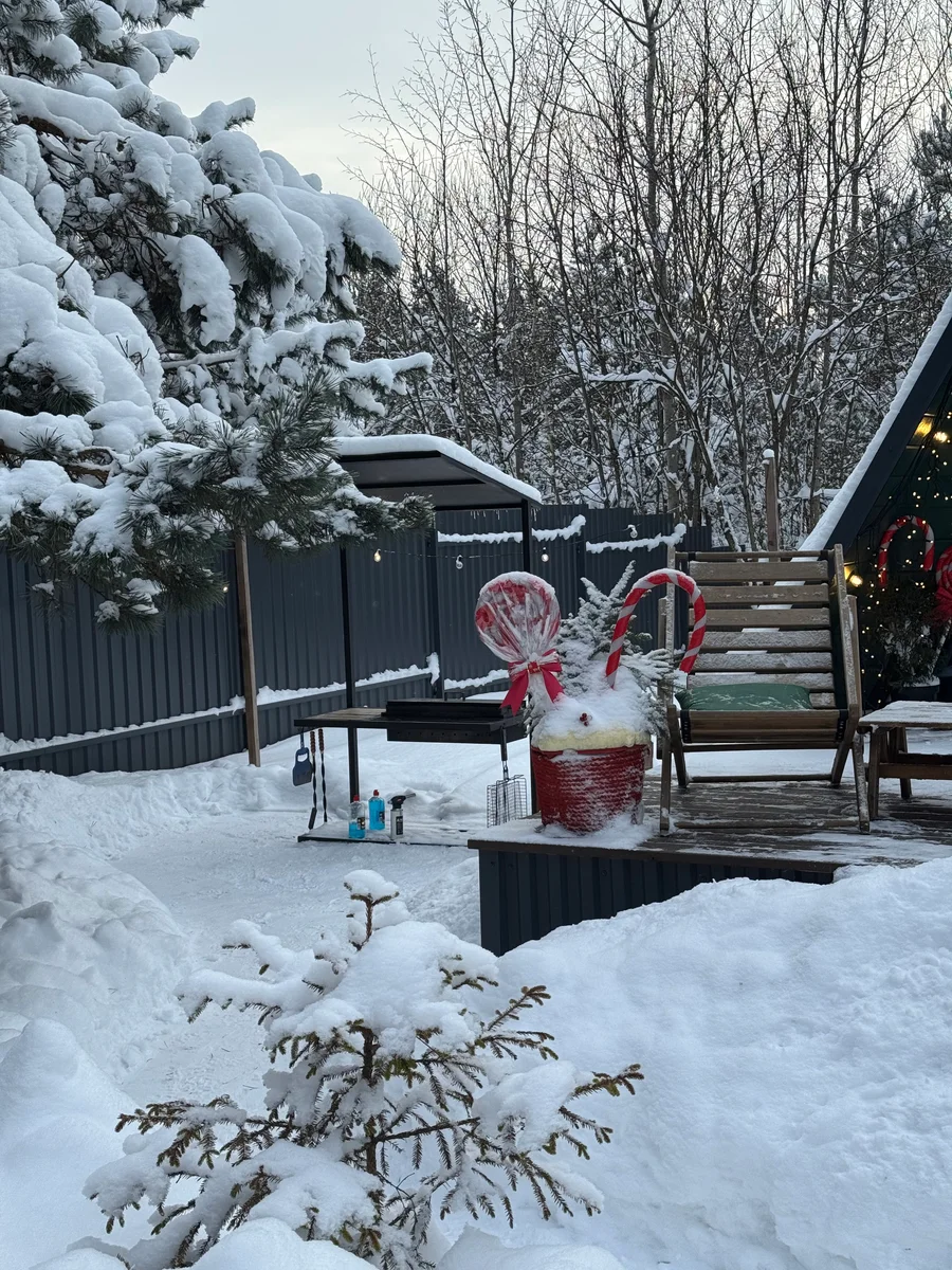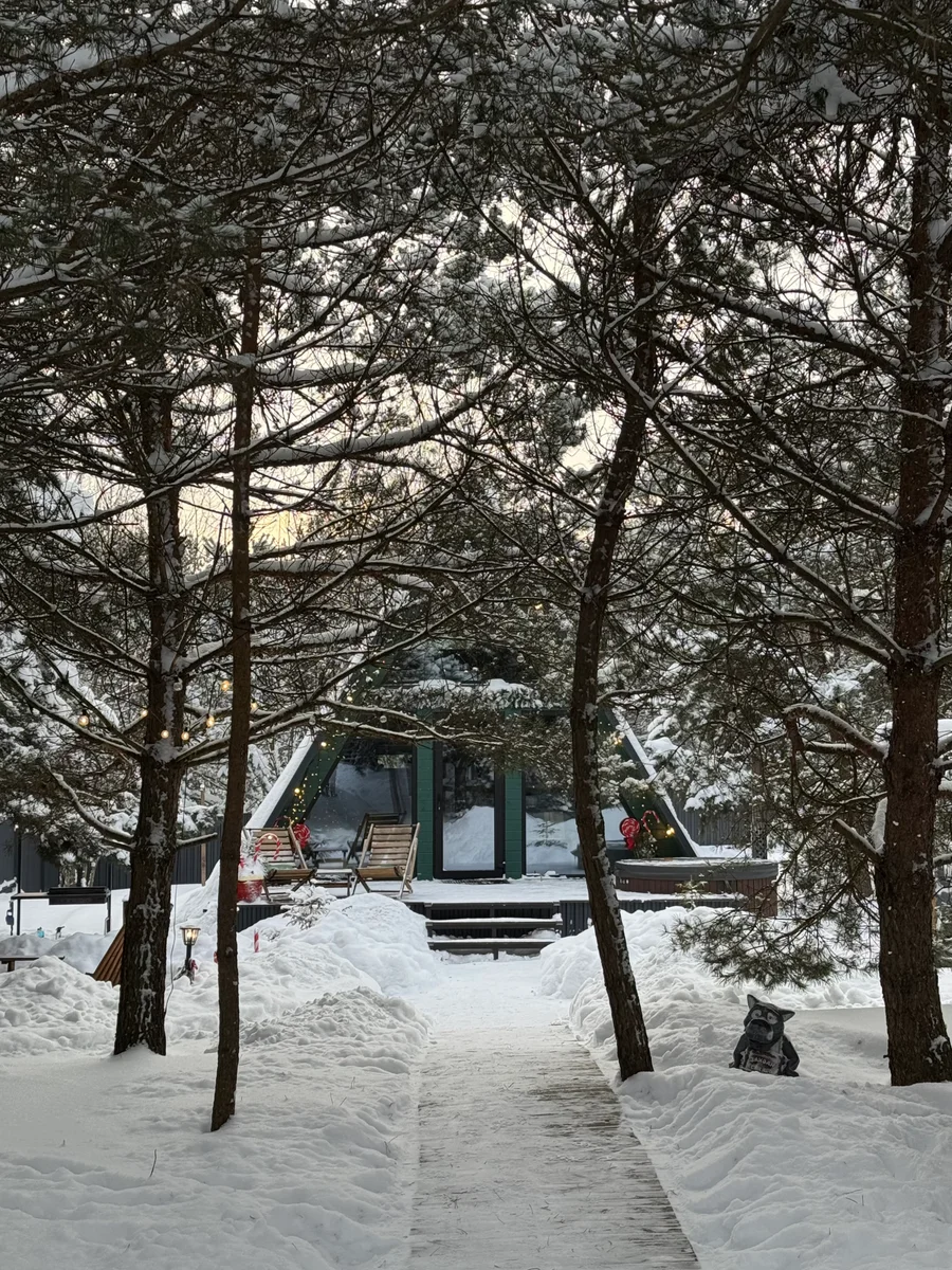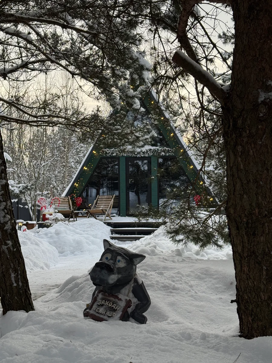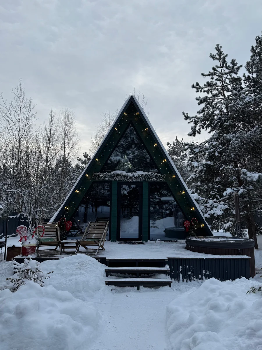 A-frame дом в изумрудном цвете в стиле 90-х. Дом находится на закрытой территории: только Вы, сосновый лес и отдых. Имеется возможность заселения без контакта с кем-либо🔐 В доме есть все необходимое для комфортного проживания и беззаботного отдыха🌲 Рядом с домом есть костровая зона и мангальная. Здесь Вы можете расслабиться в купели с подсветкой и гидромассажем, попариться в бане и приготовить свою любимую еду не только на мангале и шампурах, но и в казане🍖🌮🌯 Отличительной особенностью первого домика является наличие огромного гамака 3 на 3 метра между деревьев с проектором (летом) на улице. Отлично подойдет для тех кто любит смотреть фильмы на свежем воздухе под звездами❤️🔥 В доме есть комфортная двуспальная кровать, дополнительно на первом этаже раскладной диван еще на 2 спальных места, полностью обустроенная кухня со всем необходимым🧑🍳 В баньке можете хорошенько попариться с дубовым или березовым веником, а после насладиться ароматом хвойного леса. Терраса и костровая зона оснащены стульями и столиками🌳 В доме установлены кондиционер для комфортной Вам температуры, проектор для просмотра фильмов. Так же имеются настольные игры для развлечений. В ванной комнате есть все необходимые принадлежности❤️🔥 Если коротко: Вам осталось взять с собой только еду и напитки🍷