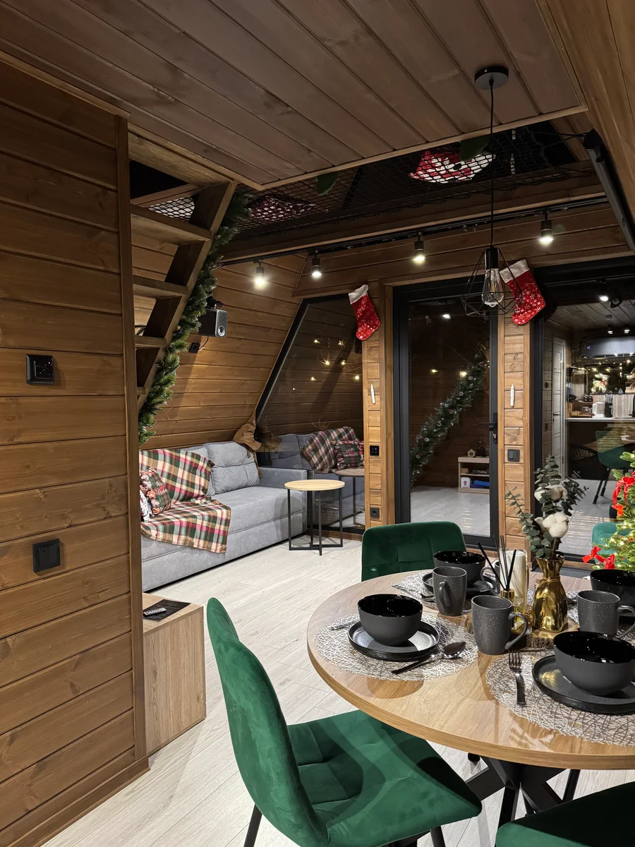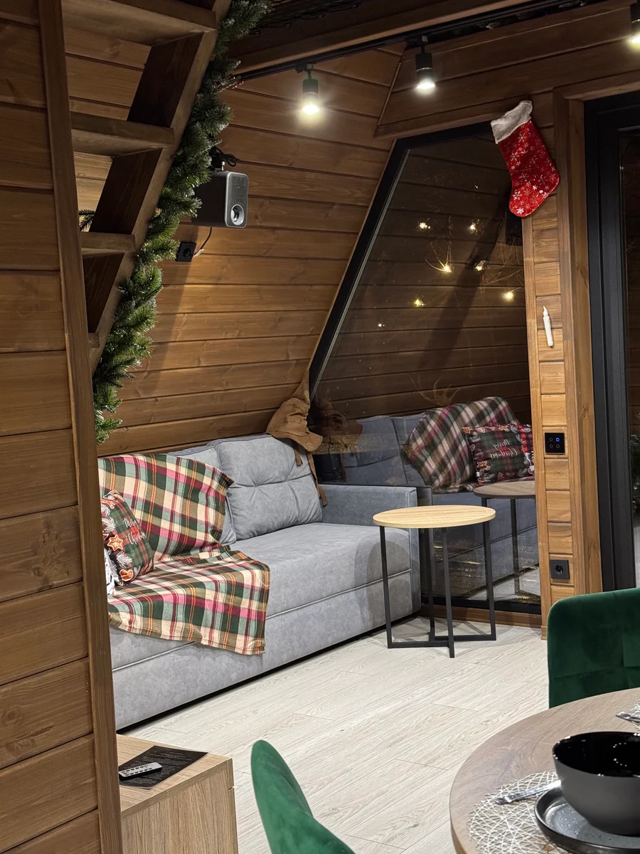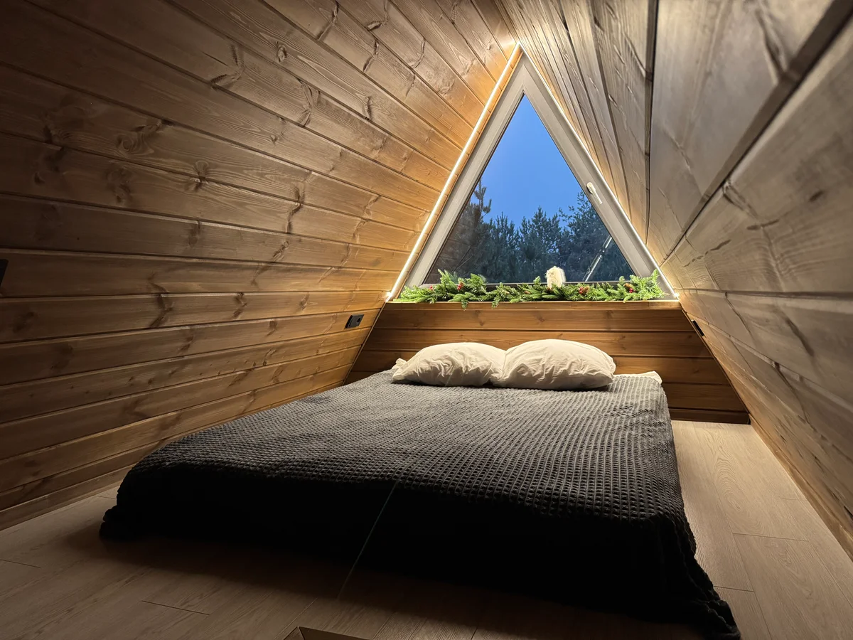 Современный треугольный дом в стилистике Гарри Поттера, где есть все необходимое для комфортного проживания и беззаботного отдыха🌲Дом находится на закрытой территории: только Вы, сосновый лес и отдых. Имеется возможность заселения без контакта с кем-либо🔐 Около дома есть костровая зона, мангальная. Здесь Вы можете расслабиться в купели с подсветкой и гидромассажем, попариться в бане и приготовить свою любимую еду не только на мангале, но и в казане🍖🌮🌯 В доме есть комфортная двуспальная кровать, дополнительно на первом этаже раскладной диван еще на 2 спальных места, полностью обустроенная кухня со всем необходимым🧑🍳 В баньке можете хорошенько попариться с дубовым или березовым веником, а после насладиться ароматом хвойного леса. Терраса и костровая зона оснащены стульями и столиками🌳 В доме установлены кондиционер для комфортной Вам температуры, проектор для просмотра фильмов. Так же имеются настольные игры для развлечений. В ванной комнате есть все необходимые принадлежности❤️🔥 Если коротко: Вам осталось взять с собой только еду и напитки🍷
